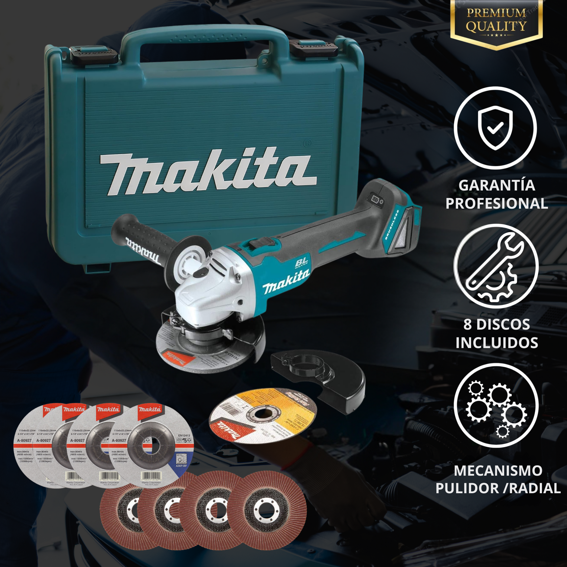 Pulidora - Radial Inalámbrica Makita | 8 Discos de Pulimento